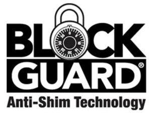 Master Lock® na tuto hrozbu odpověděl vylepšením kombinačních visacích zámků patentovanou anti-shim technologií BlockGuard®. Nová patentovaná ochrana proti shimmingu BlockGuard® od Master Lock® je založena na speciálně navržené západce schopné odolávat shimming útokům. Kompaktní provedení a zvlněný povrch eliminují slabiny, které můžeme nalézt u běžného blokovacího mechanismu zámku. Jak odolá BlockGuard® rotačnímu shimmingu? Kompaktní západka nemá větší šířku než třmen a po zasunutí shimu nedojde k nalezení místa vstupu západky do třmenu, nýbrž zablokování shimu o plochou stranu západky. Jak je tomu u top-down shimmingu? Speciálně navržené zářezy v západce zabraňují zasunutí shimu mezi západku a třmen, a dokonce ji zatlačí hlouběji do třmenu.