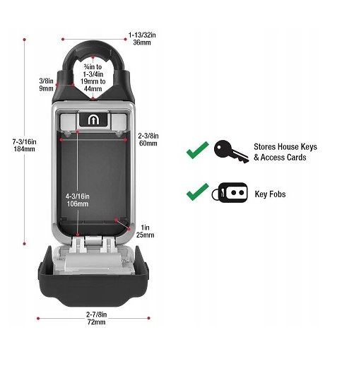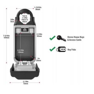Střední bezpečnostní přenosná schránka s nastavitelným okem pro uložení klíčů a cenností. Skříňka má nastavitelné univerzální oko pro bezpečné použití na téměř jakémkoli druhu dveřního kování. Barva šedá + černá.