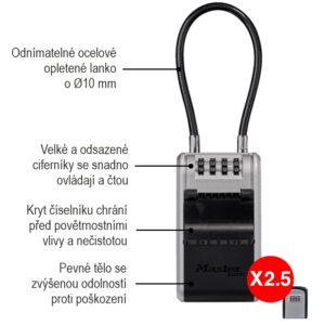 – Zvýšená kapacita úložiště – až 2,5x větší kapacita. Kapacita schránky je přibližně 2,5násobkem kapacity standardní schránky na klíče. Umožňuje bezpečné uložení až 10 klíčů (klíčenky, karty a velké klíče).