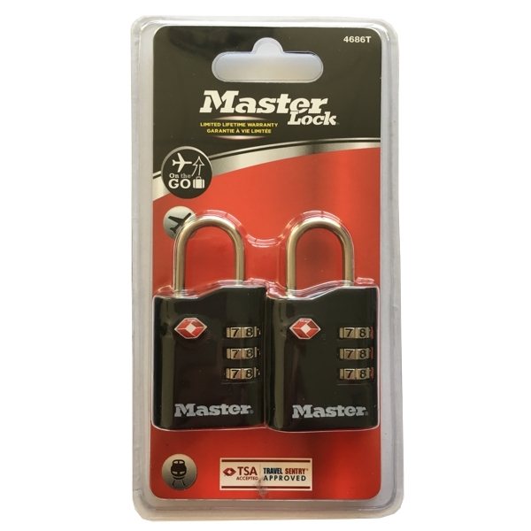 Kombinační visací zámky Master Lock TSA – černý (2 ks / blistr)
