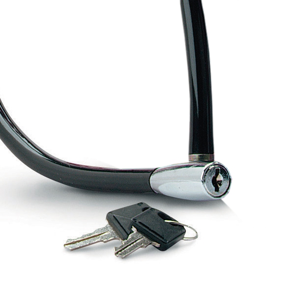 Ocelové kroucené lanko na klíč o délce 55cm a průměru 6mm má vinylový potah, který zabraňuje poškrábání. Obsahuje integrovaný zajišťovací mechanismus s válcovým klíčem, součástí balení jsou 2ks klíčů.