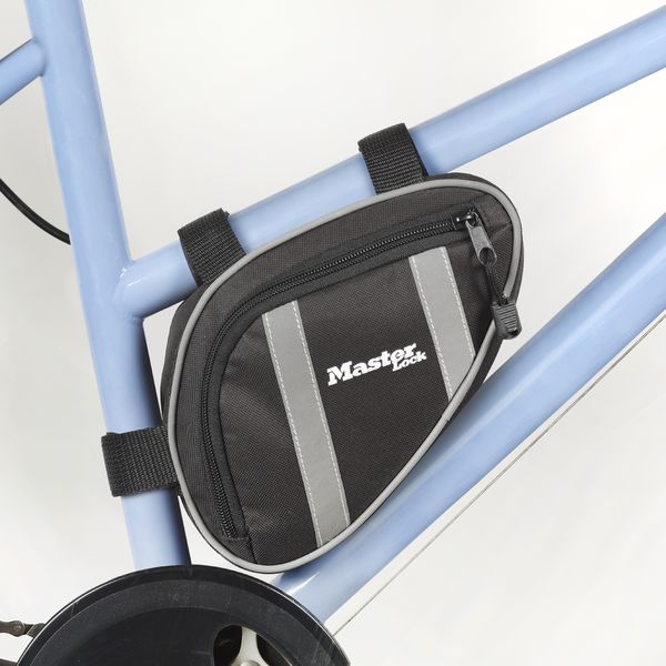 Pouzdro na kolo pro zámky Master Lock™, má 3 poutka se suchým zipem pro rychlé uchycení k rámu kola a 2 reflexní pruhy pro bezpečnou jízdu v noci.