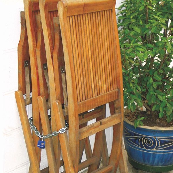 Řetěz s hranatými oky z kalené oceli o délce 1,5 m. Transparentní vinylový obal chránící řetěz proti korozi a mechanickému poškození. Vysoká odolnost proti přeřezání. Vhodné pro visací zámky Master Lock™.