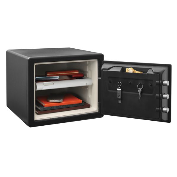 Trezor odolný vodě a ohni LFW082FTC má objem 22,7l. Jeho masivní ocelová konstrukce je odolná vodě (24 hod) a ohni (>60 min). Obsahuje 3 ocelové západky o průměru 25mm a skryté panty zabraňující vypáčení, dále součástí jsou 3 nastavitelné police.