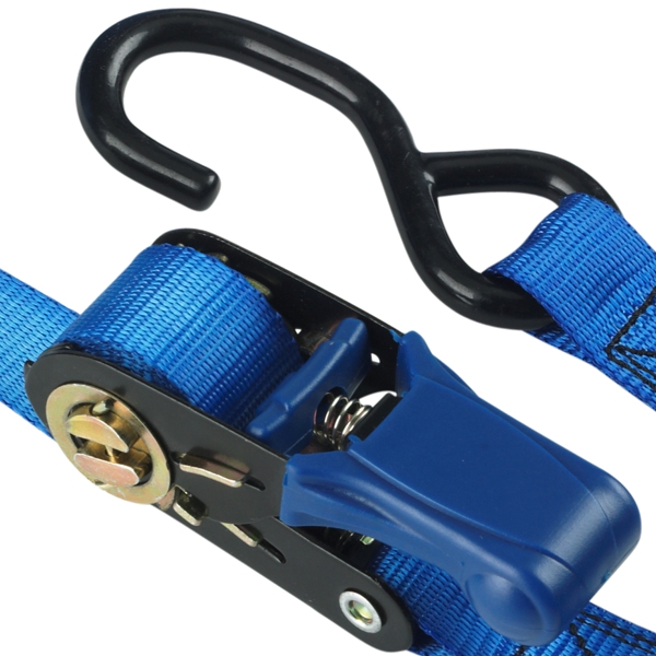 Upínací popruh s ráčnou a háčky na konci 4366EURDAT. Délka popruhu je 5 000 mm a jeho šířka činí 25 mm. Maximální nosnost činí 300 kg. Nabízíme v modré barvě. Cena za kus.