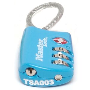 Visací zámek o šířce 30 mm pro zavazadla schválen agenturou TSA. Kovové tělo zámku je odolné proti poškození. Třmen z ocelového lanka o průměru 3 mm a délce 40 mm je odolný proti přeřezání. Obsahuje nastavitelnou 3-cifernou kombinaci zámku.