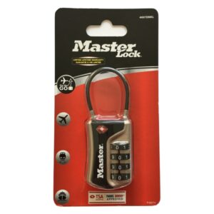 Visací kombinační zámek o šířce 36 mm pro zavazadla schválen agenturou TSA. Kovové tělo zámku je odolné proti poškození. Třmen z ocelového lanka o průměru 3 mm a délce 38 mm je odolný proti přeřezání. Obsahuje nastavitelnou 4-cifernou kombinaci zámku.