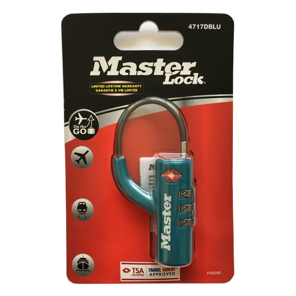 Visací kombinační zámek o šířce 18 mm pro zavazadla, schválen agenturou TSA, má unikátní design. Kovové tělo zámku je odolné proti poškození. Třmen z ocelového lanka o průměru 3 mm a délce 40 mm je odolný proti přeřezání. Zámek obsahuje nastavitelnou 3-cifernou kombinaci zámku.