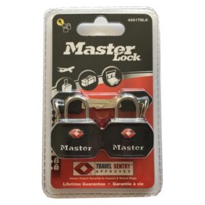 Set 2 ks visacích zámků o šířce 30 mm pro zavazadla schválen agenturou TSA. Hliníkové tělo zámku má ABS ochranný obal, jeho třmen z oceli o průměru 3 mm je odolný proti přeřezání a přestřižení. Zámek obsahuje cylindrickou vložku se 3 stavítky se společným klíčem. Součástí balení jsou 4 ks klíčů.