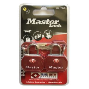 Set 2 ks visacích zámků o šířce 30 mm pro zavazadla schválen agenturou TSA. Hliníkové tělo zámku má ABS ochranný obal, jeho třmen z oceli o průměru 3 mm je odolný proti přeřezání a přestřižení. Zámek obsahuje cylindrickou vložku se 3 stavítky se společným klíčem. Součástí balení jsou 4 ks klíčů.
