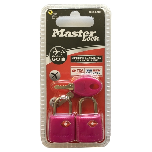 Set 2 ks visacích zámků o šířce 23 mm pro zavazadla, schváleno agenturou TSA. ABS plastové tělo zámku obsahuje cylindrickou vložku se 3 stavítky se společným klíčem, jeho třmen je z oceli o průměru 3 mm a je odolný proti přeřezání a přestřižení. Součástí balení jsou 4 ks klíčů.