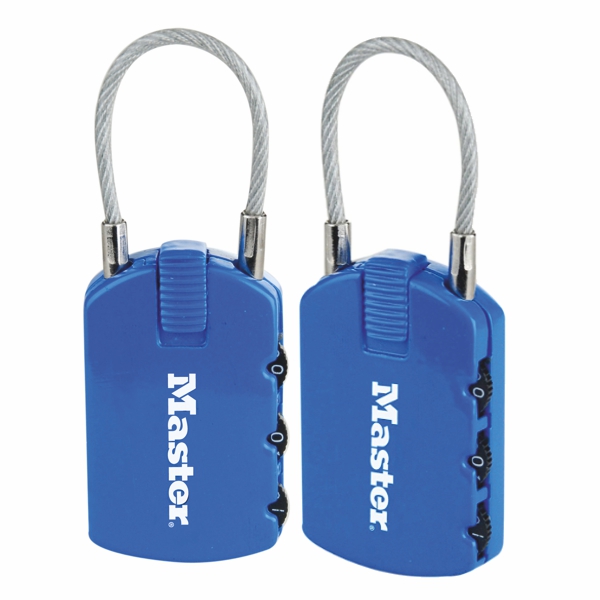 Set 2 ks visacích zámků o šířce 30 mm s adresním štítkem pro snadnou identifikaci. Jeho zinkové tělo je odolné proti poškození. Třmen je z flexibilního ocelového lanka o průměru 2 mm a má délku 10 mm. Zámek má nastavitelnou 3-cifernou kombinaci zámku.