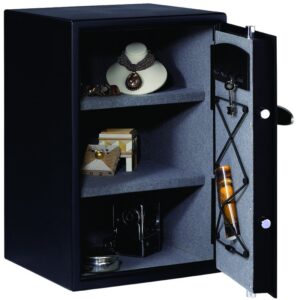 Vysoce bezpečnostní digitální trezor Master Lock T6-331ML se zvýšeným zabezpečením, obsahuje 2 nastavitelné police, velikosti L. Hmotnost 47 kg; objem 61,7 l.