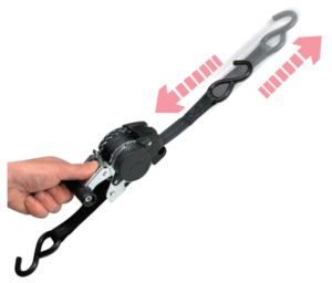 Popruhy se speciálně vyvinutou samonavíjecí ráčnou pro její jednoduché a praktické použití. Po stisknutí tlačítka se začne popruh automaticky navíjet nebo odvíjet. Díky plastovým ochranným prvkům je zajištěna jak bezpečnost při obsluze, tak i ochrana nákladu při přepravě.